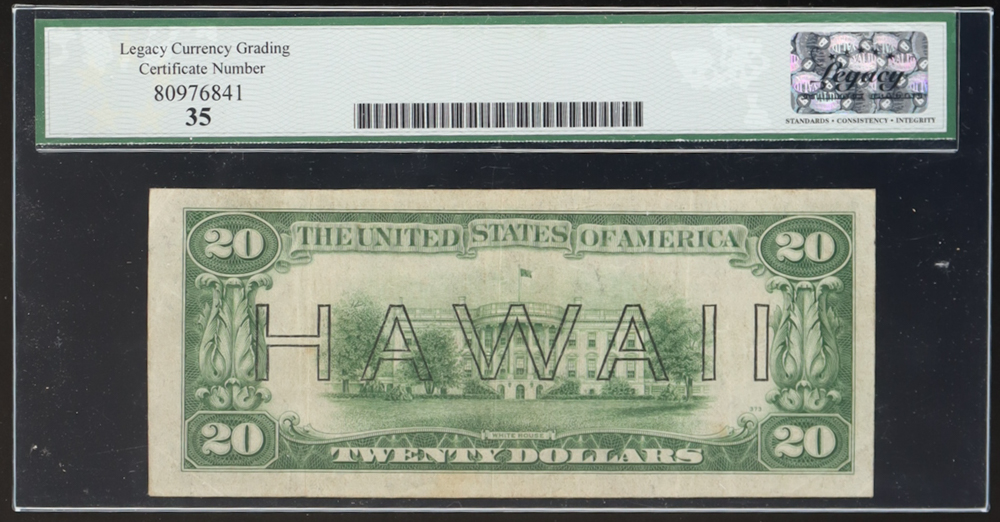1934-A $20 Twenty Dollars Hawaii Overprint Federal Reserve Note (Legacy VF35)