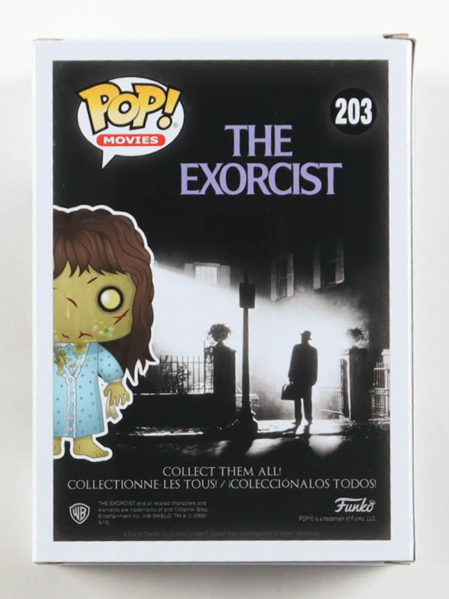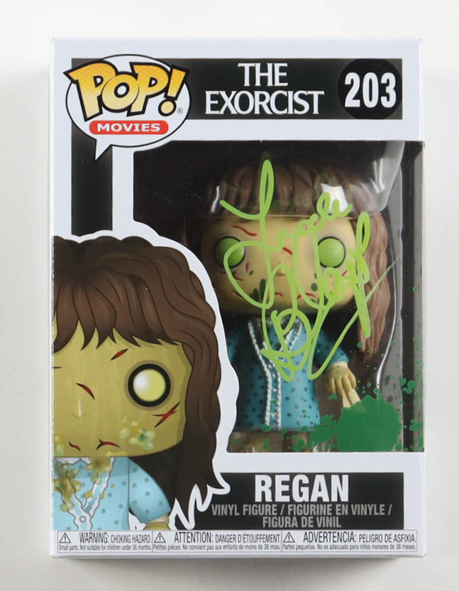 Funko Pop! vinyl figure measures approximately 4" in height and has been hand-signed on the packaging by Linda Blair.