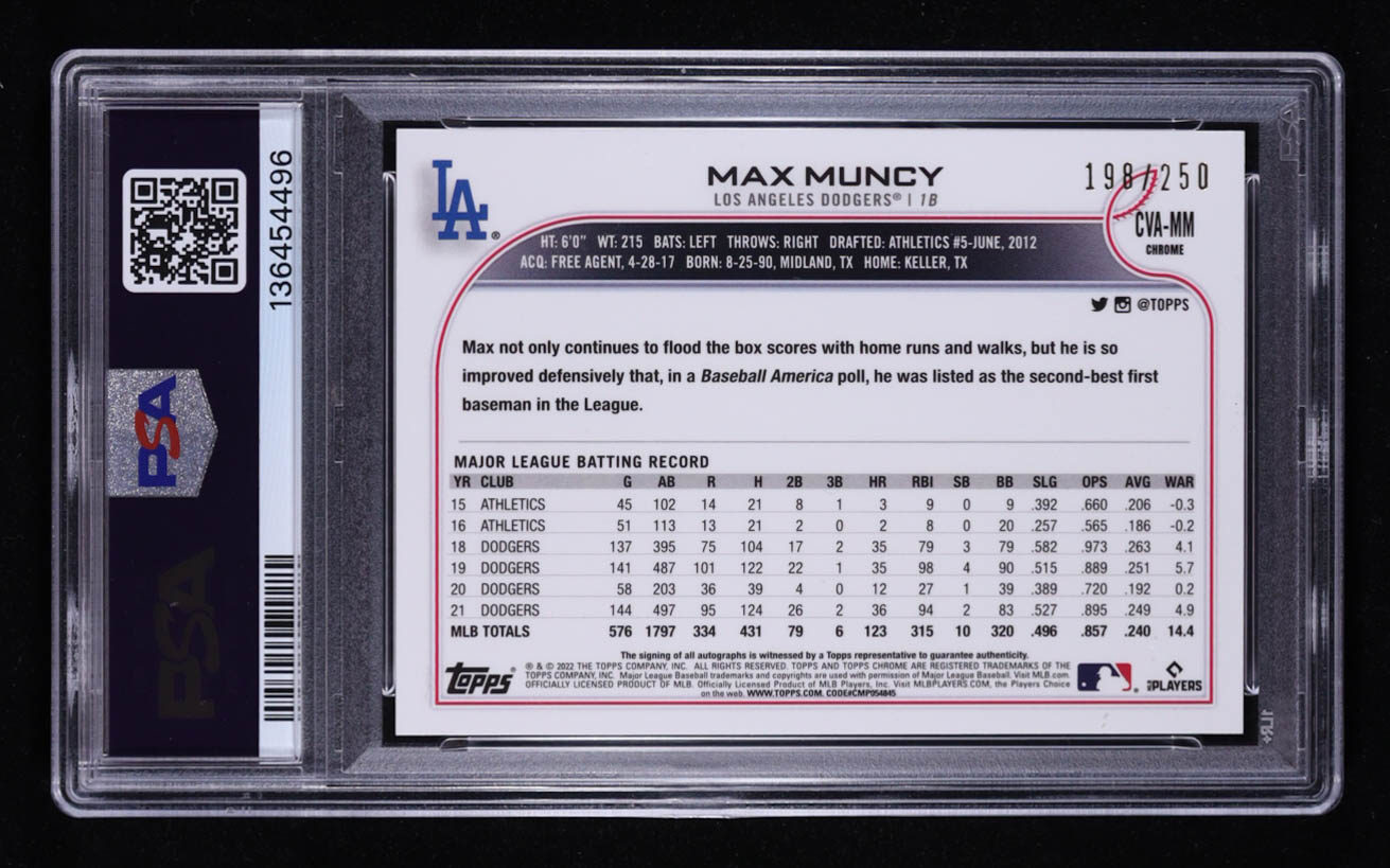 Max Muncy 2022 Topps Chrome Veteran Autographs Purple Refractors #CVAMM #198/250 (PSA 9)