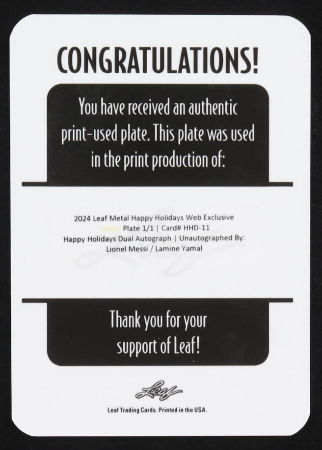 Lamine Yamal / Lionel Messi 2024 Leaf Holiday Printing Plates Yellow #HHD11 #1/1