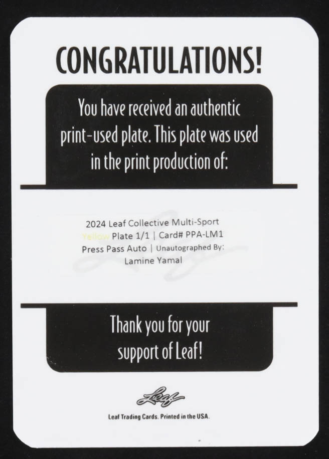 Lamine Yamal 2024 Leaf Collective Printing Plate Yellow #PPALM1 #1/1