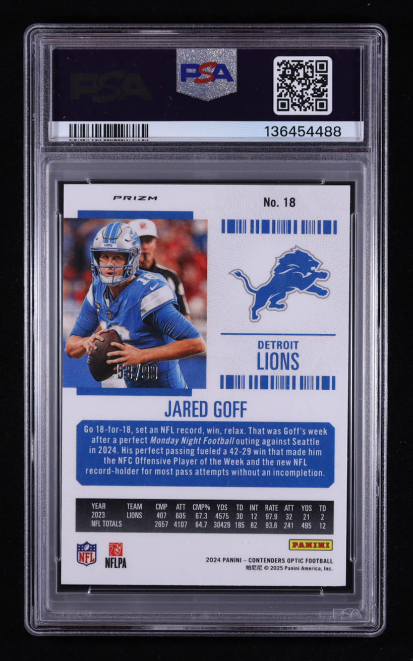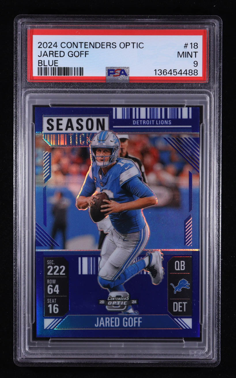Jared Goff 2024 Panini Contenders Optic Blue #18 #58/99 (PSA 9)
