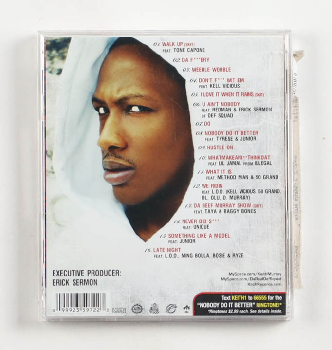 "Rapp-Murr-Phobia (The Fear of Real Hip-Hop)" CD insert has been hand-signed by Keith Murray. Please note, the CD and case are included as shown.
