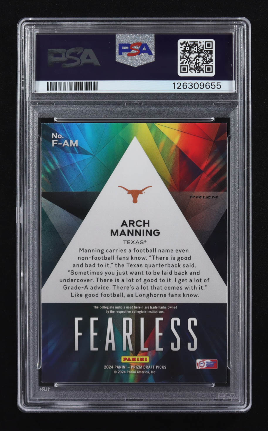 Arch Manning 2024 Panini Prizm Draft Picks Fearless-Red Ice Rated Prospect #F-AM RC (PSA 9)