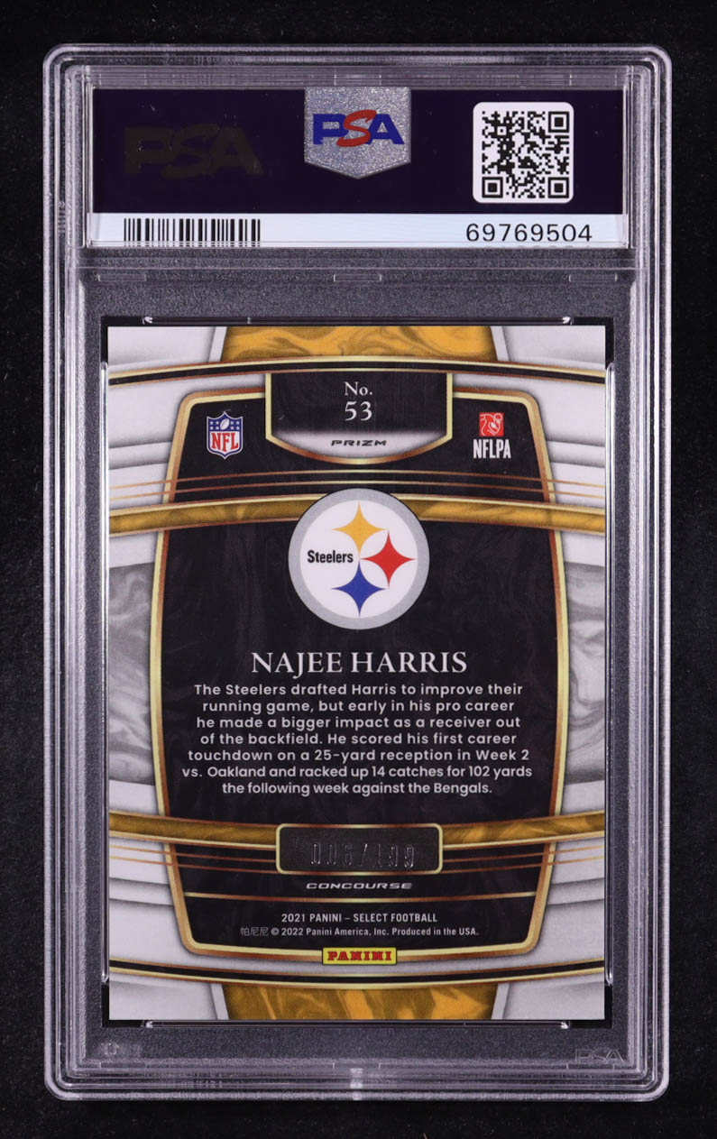 Najee Harris 2021 Select Prizm Blue #53 #006/199 RC (PSA 10)