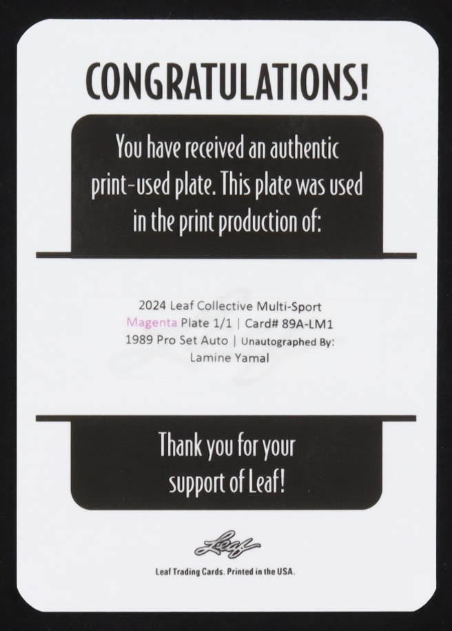 Lamine Yamal 2024 Leaf Collective Printing Plates Magenta #89ALM1 #1/1
