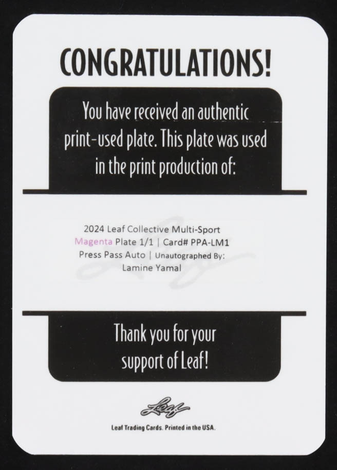 Lamine Yamal 2024 Leaf Collective Printing Plates Magenta #PPALM1 #1/1