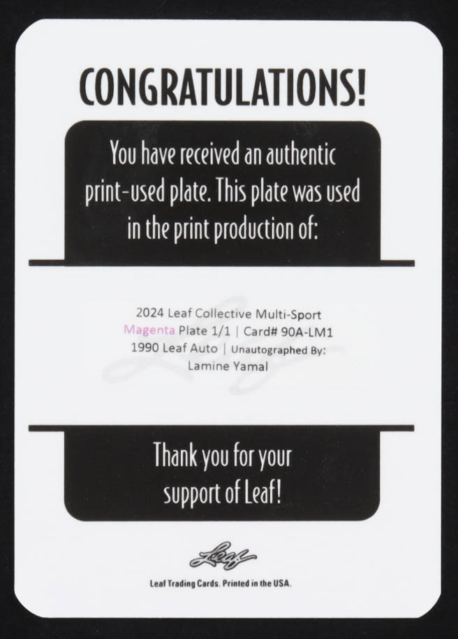 Lamine Yamal 2024 Leaf Collective Printing Plates Magenta #90ALM1 #1/1