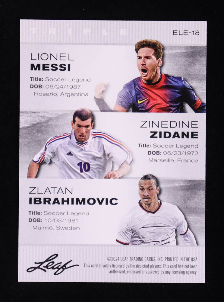 Lionel Messi / Zinedine Zidane / Zlatan Ibrahimovic 2024 Leaf Special Release Exclusive Legends Edition #ELE18