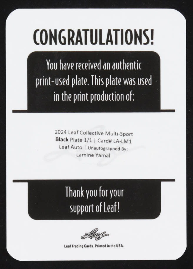 Lamine Yamal 2024 Leaf Collective Printing Plates Black #LALM1 #1/1