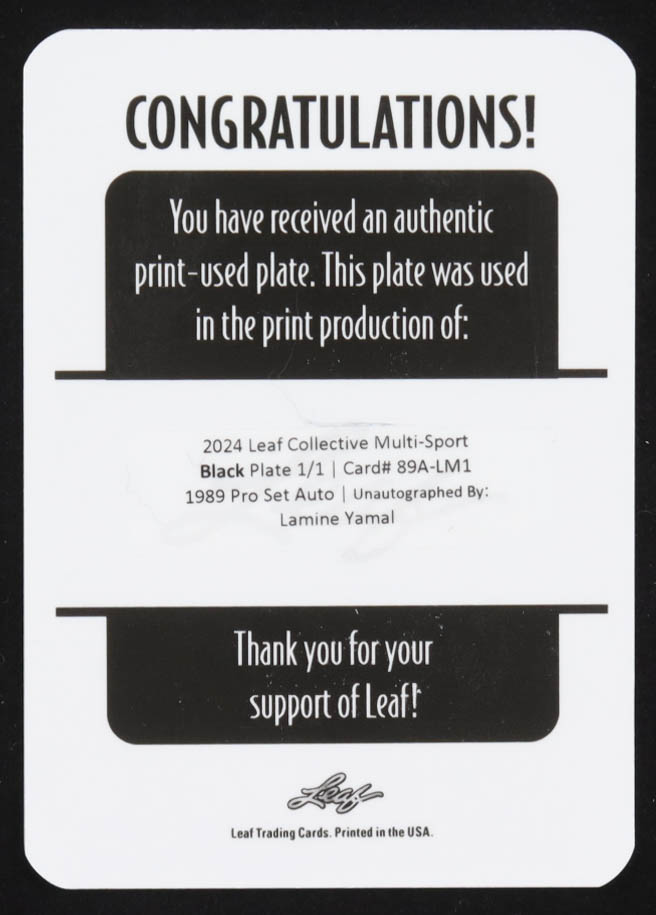 Lamine Yamal 2024 Leaf Collective Printing Plates Black #89ALM1 #1/1