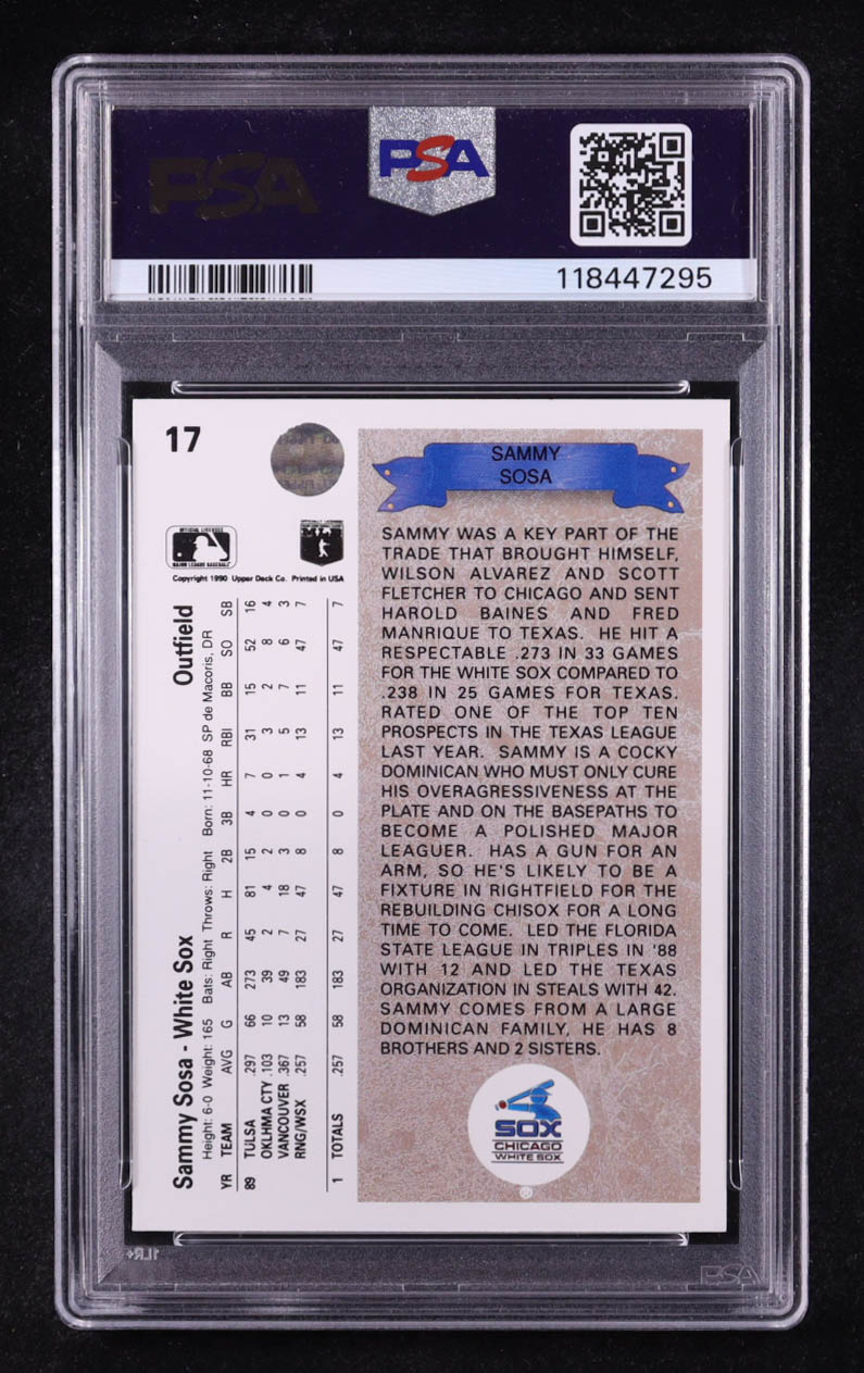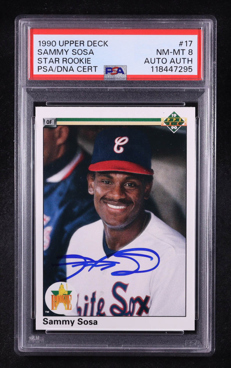 Sammy Sosa Signed 1990 Upper Deck #17 RC (PSA 8 | Auto Grade PSA Authentic)