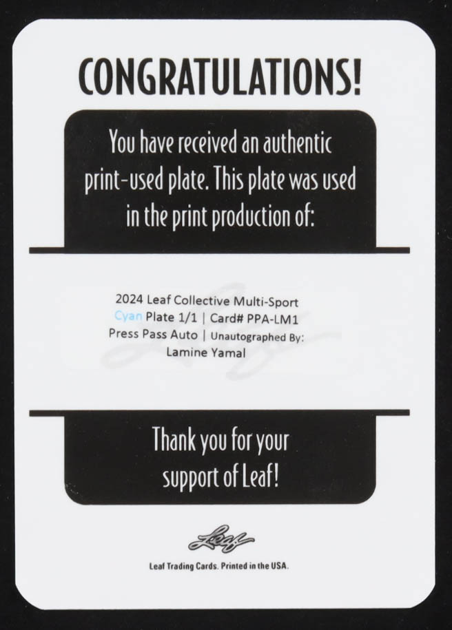 Lamine Yamal 2024 Leaf Collective Printing Plates Cyan #PPALM1 #1/1