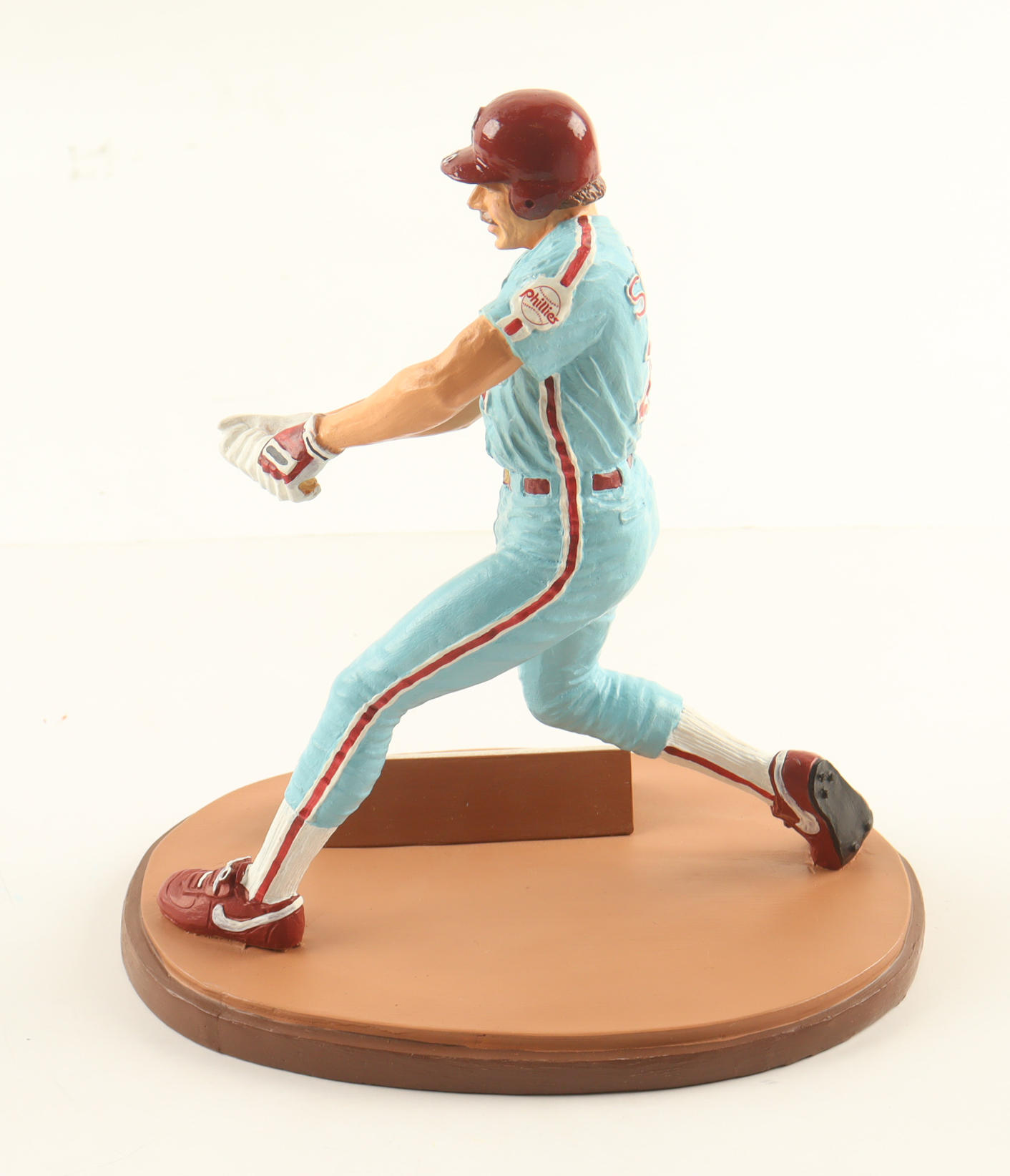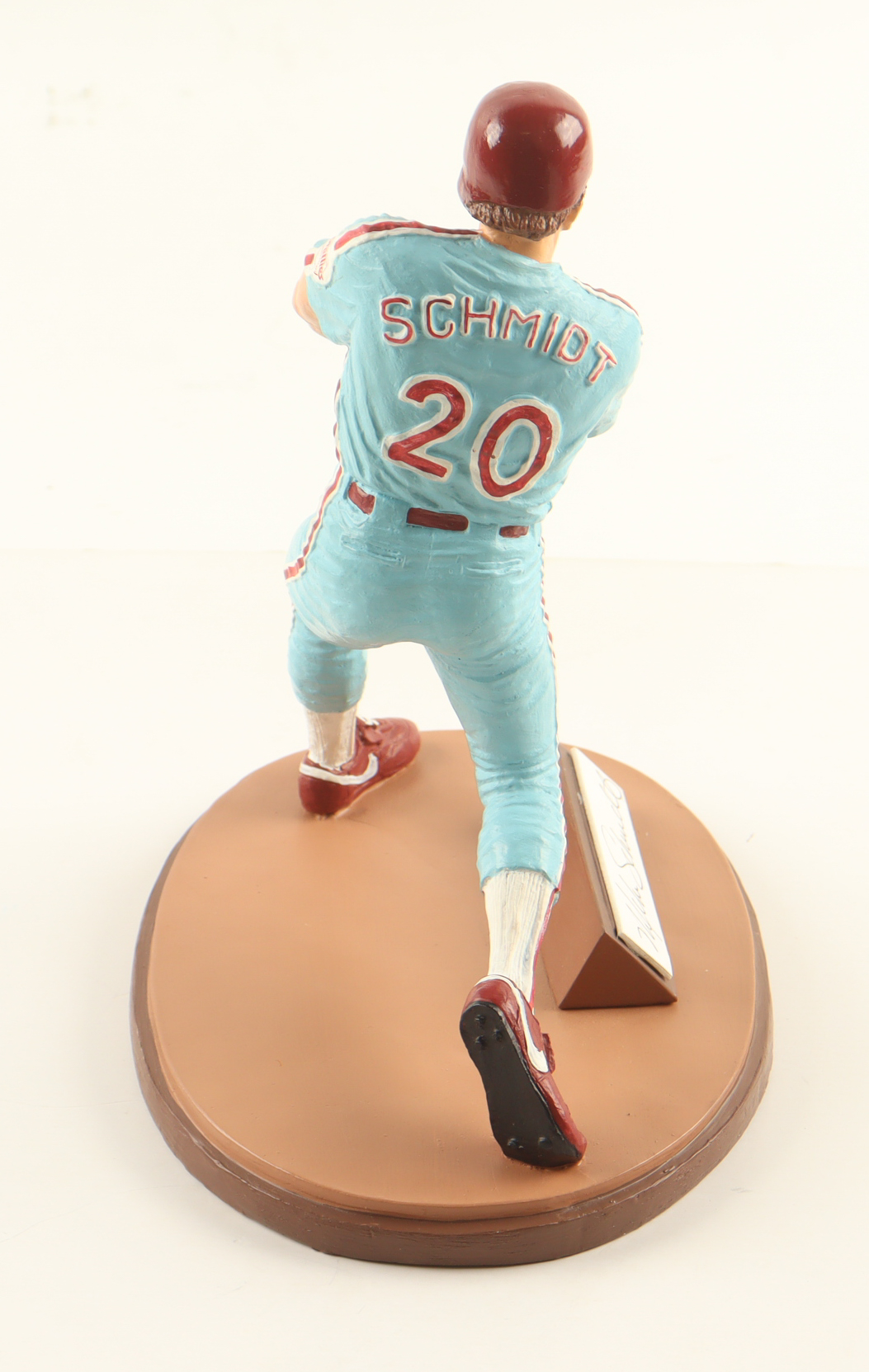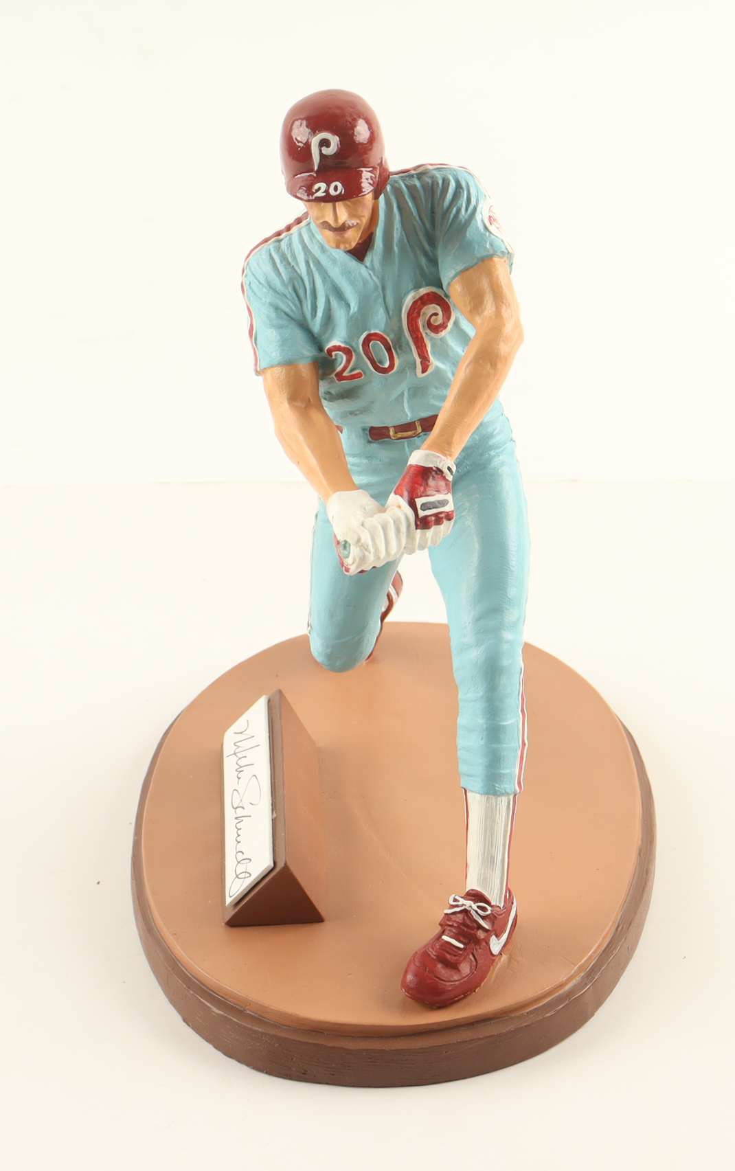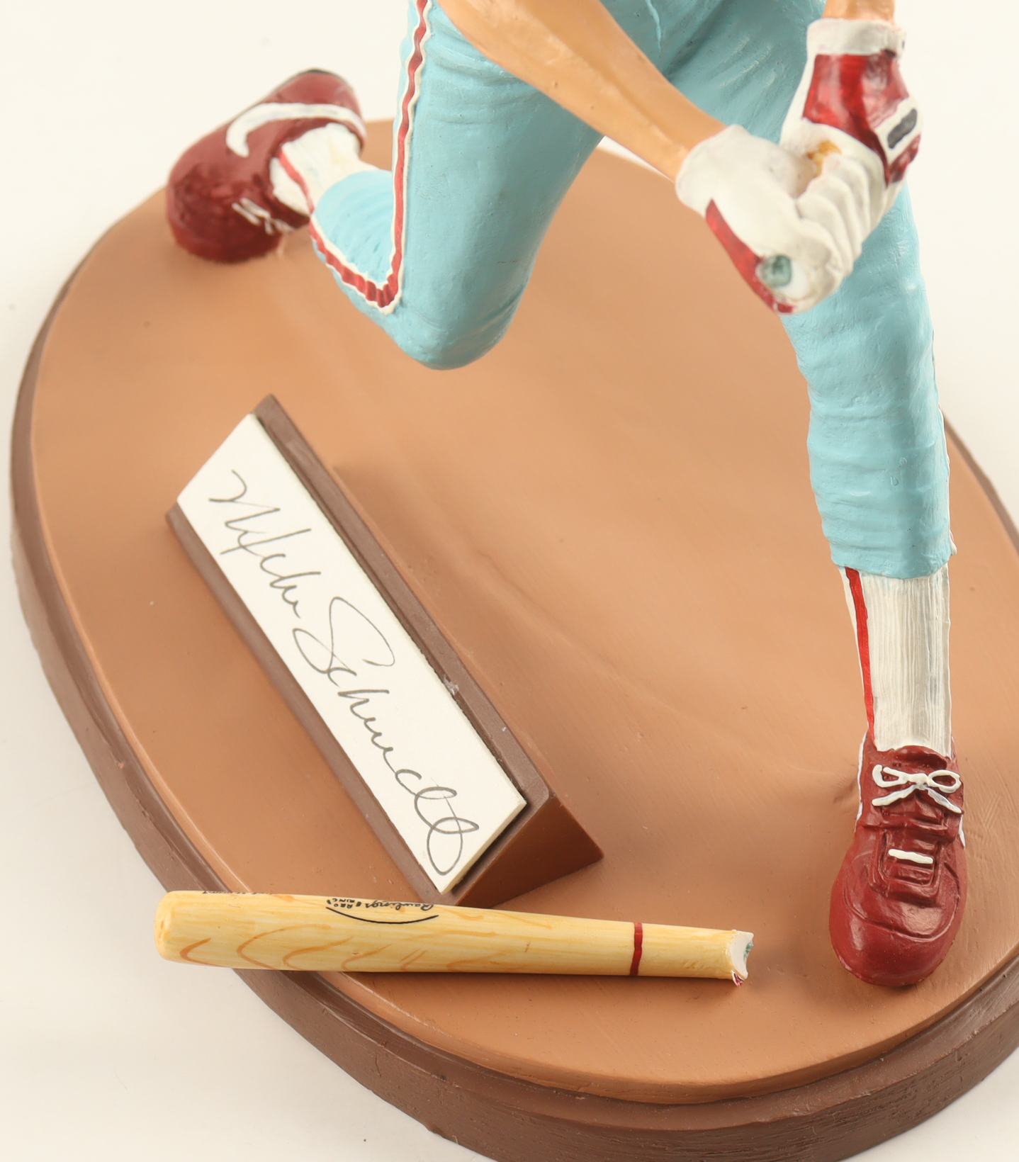 Ceramic figurine measures approximately 9" tall and has a cut that has been hand-signed by Mike Schmidt (Philadelphia Phillies, HOF). The figurine is limited edition #20 / 1987. Please note, the bat piece for the figurine is broken.