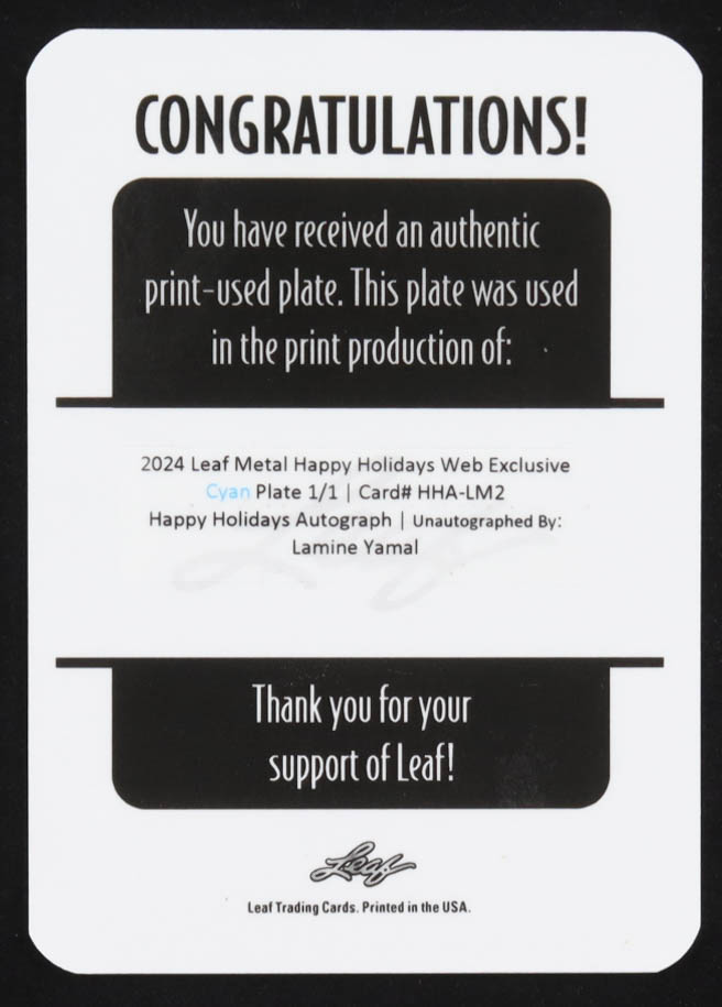Lamine Yamal 2024 Leaf Metal Holiday Printing Plates Cyan #HHALM2 #1/1
