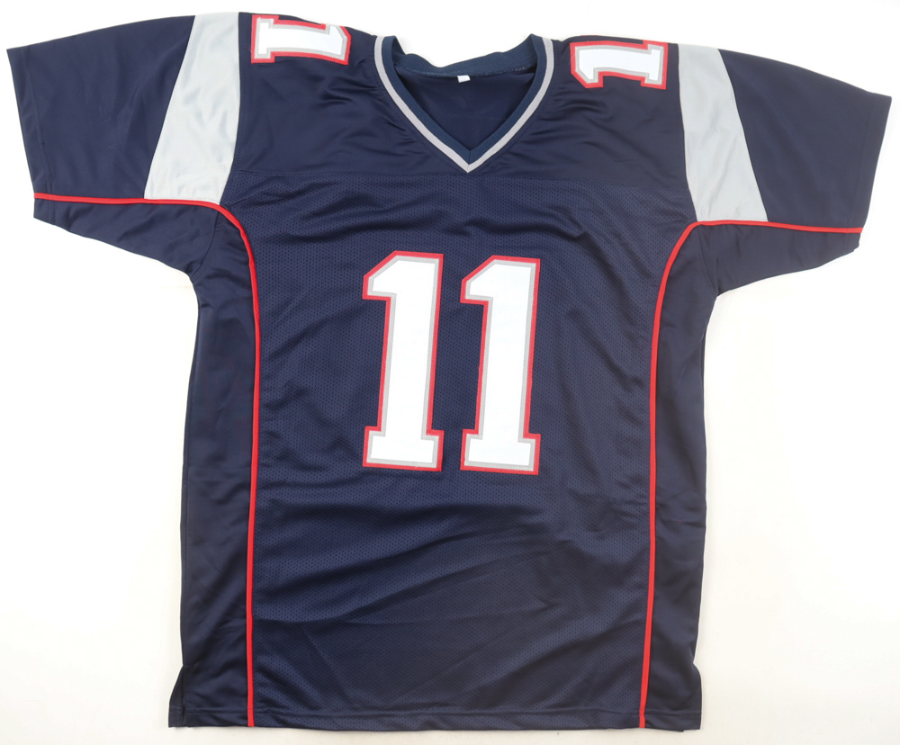 Custom jersey with everything sewn on, size XL. Hand-signed by Julian Edelman.