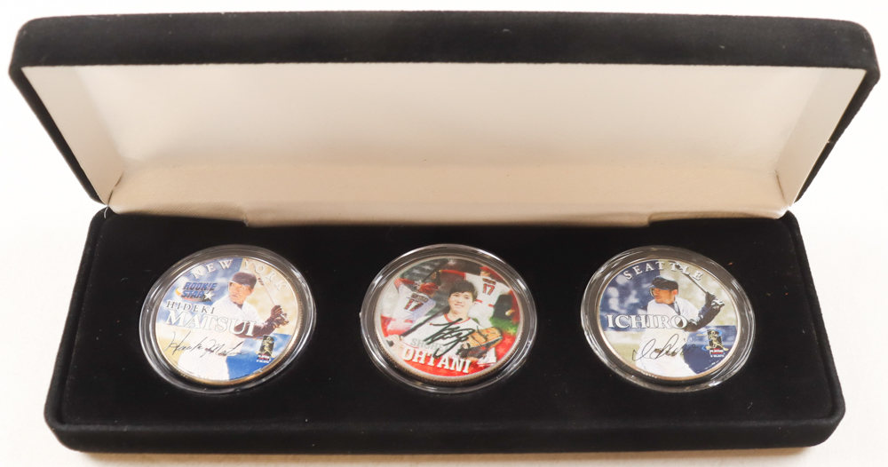 Shohei Ohtani, Hideki Matsui & Ichiro Suzuki Merrick Mint Legal Tender Set of (3) Coins With Case