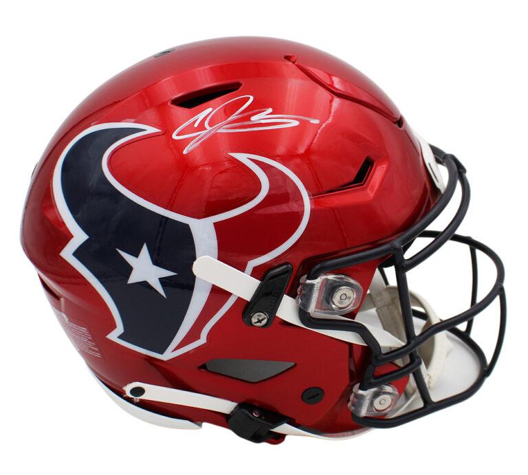 Riddell Houston Texans full-size authentic on-field alternate speedflex helmet has been hand-signed by Andre Johnson (HOF).