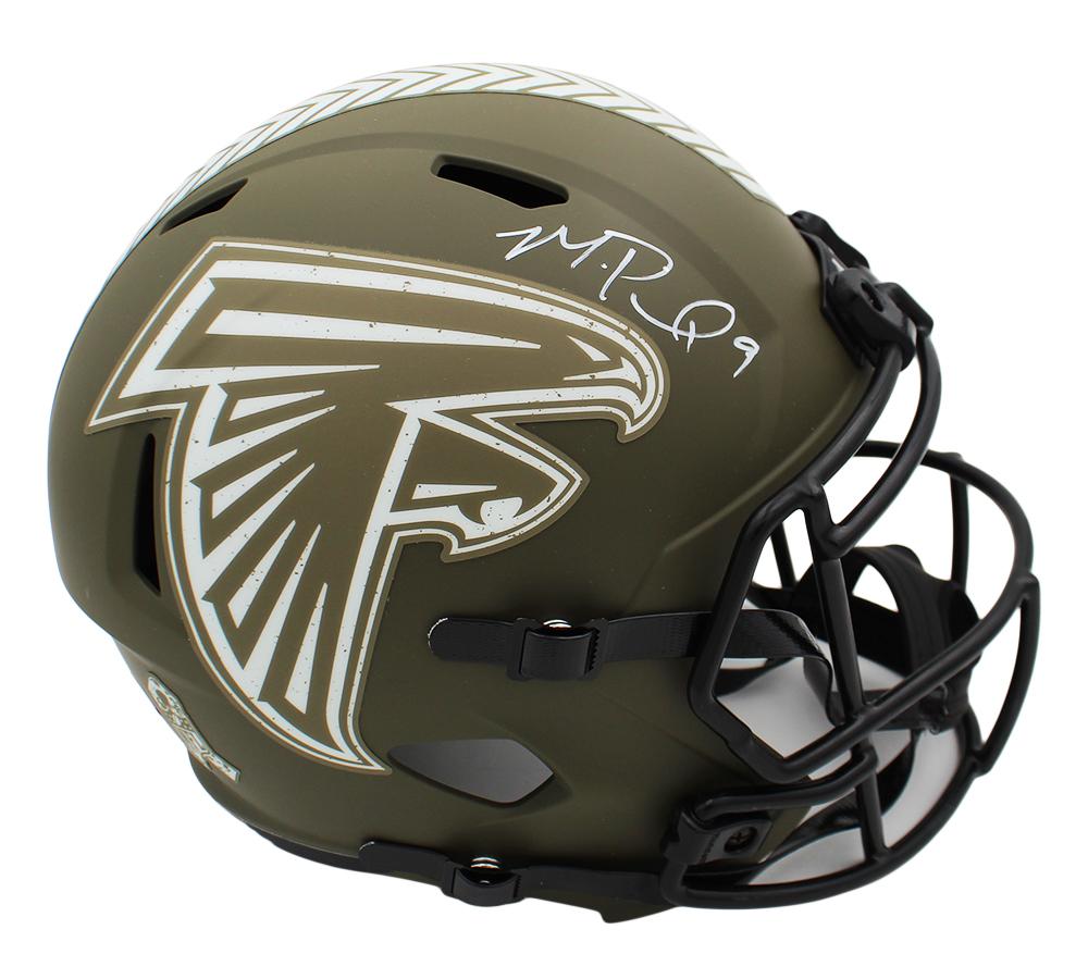 Riddell Atlanta Falcons full-size salute to service alternate speed replica helmet. Hand-signed by Michael Penix Jr.