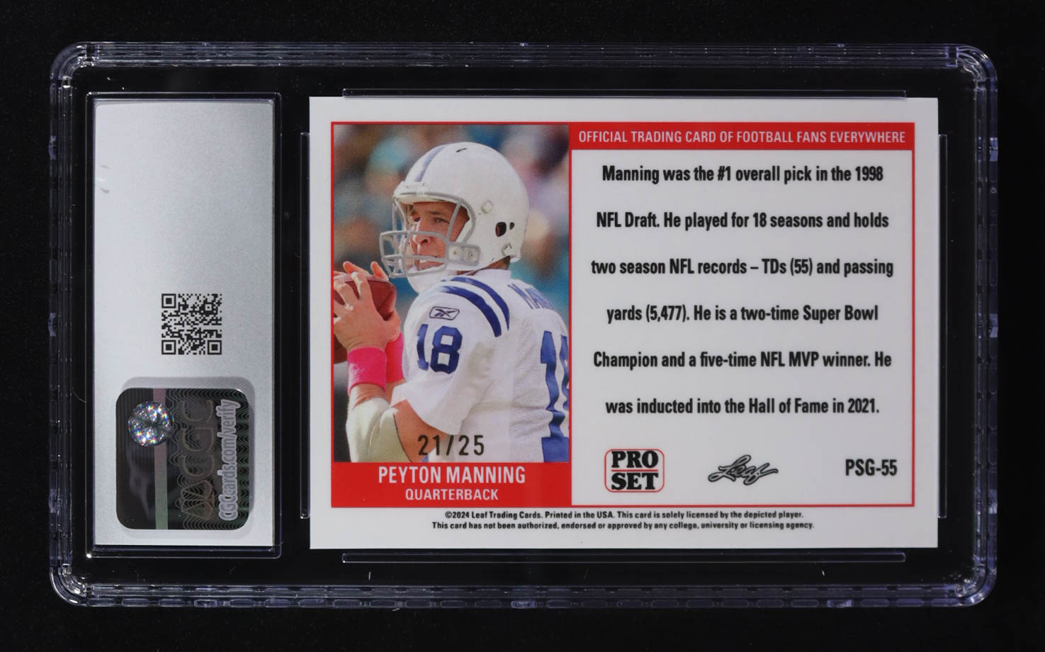 Peyton Manning 2023 Leaf Web Exclusives Pro Set Blue #PSG55 #21/25 (CGC 10)
