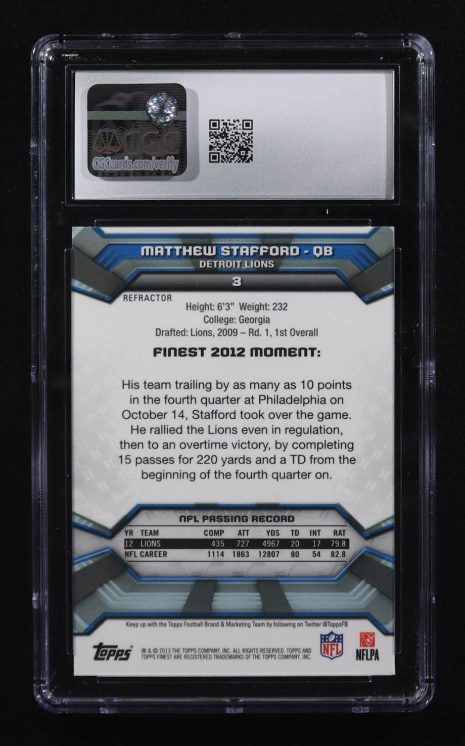 Matthew Stafford 2013 Finest Refractors #3 (CGC 10)