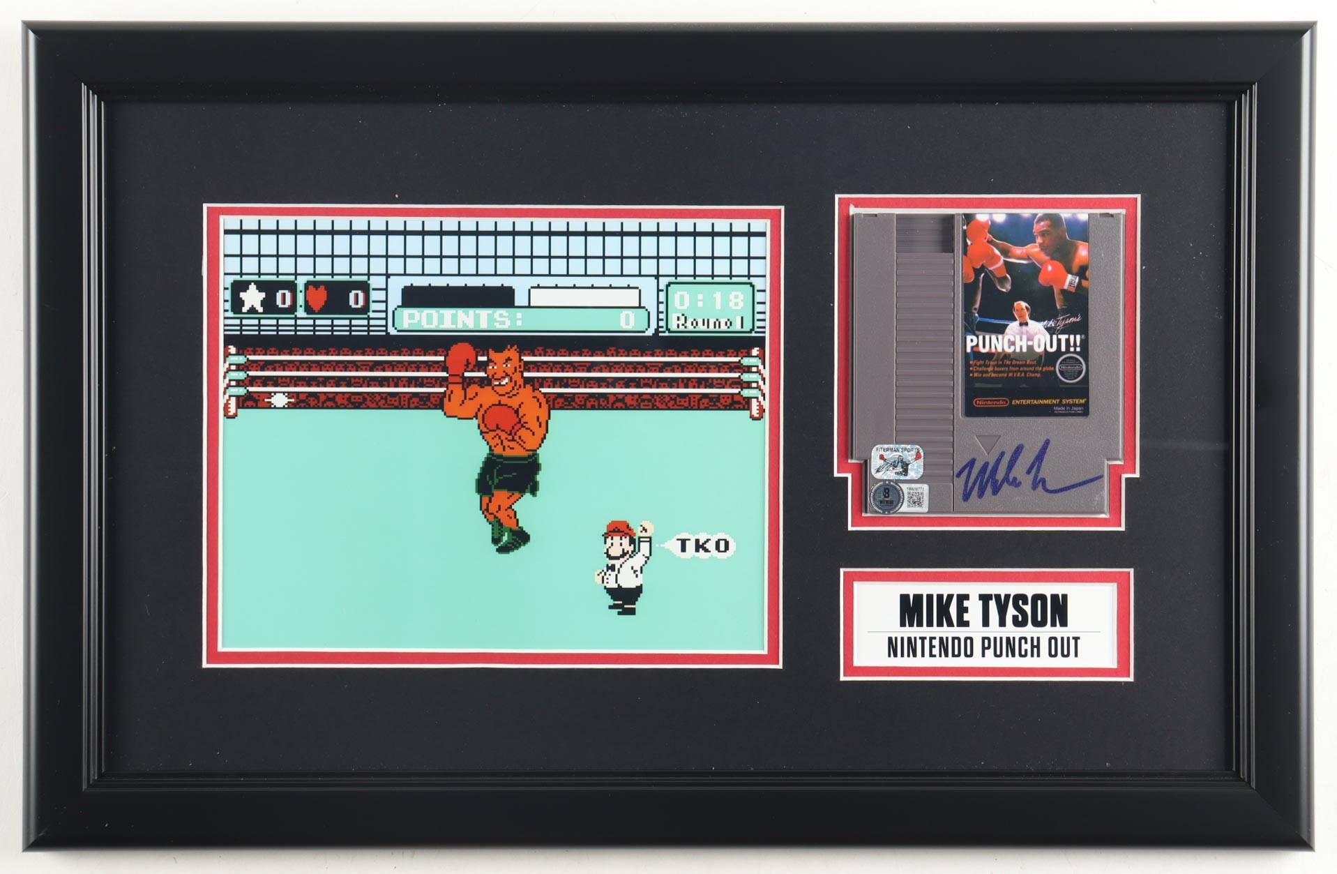 Custom frame measures approximately 14.5" x 22.5" in size and and features a photo as well as a "Punch-Out!!" 1987 original Nintendo video game cartridge that has been hand-signed by Mike Tyson (HOF).