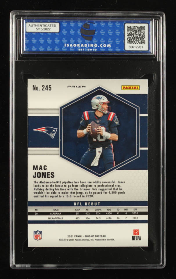 Mac Jones 2021 Panini Mosaic Mosaic Green #245 DEB RC (ISA 10)