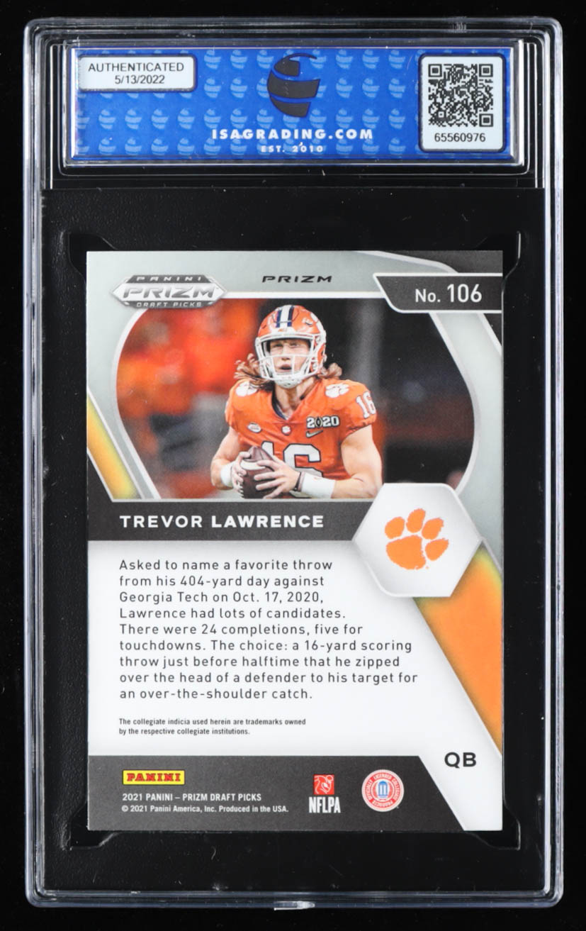 Trevor Lawrence 2021 Panini Prizm Draft Picks Prizms Red White and Blue #106 RC (ISA 10)