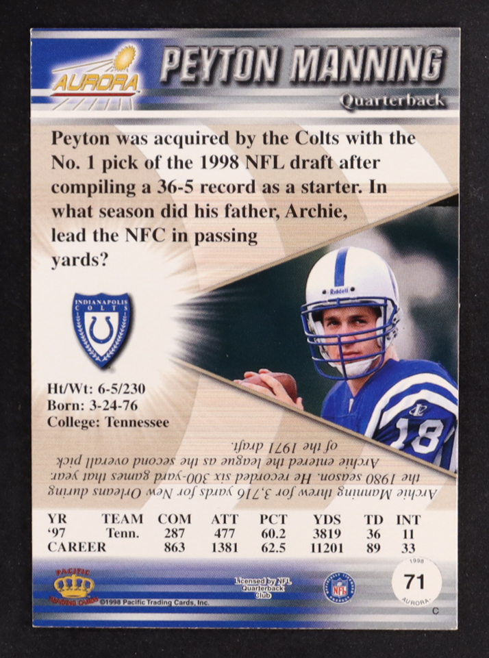 Please see photos for more details regarding the condition of the card (Indianapolis Colts).