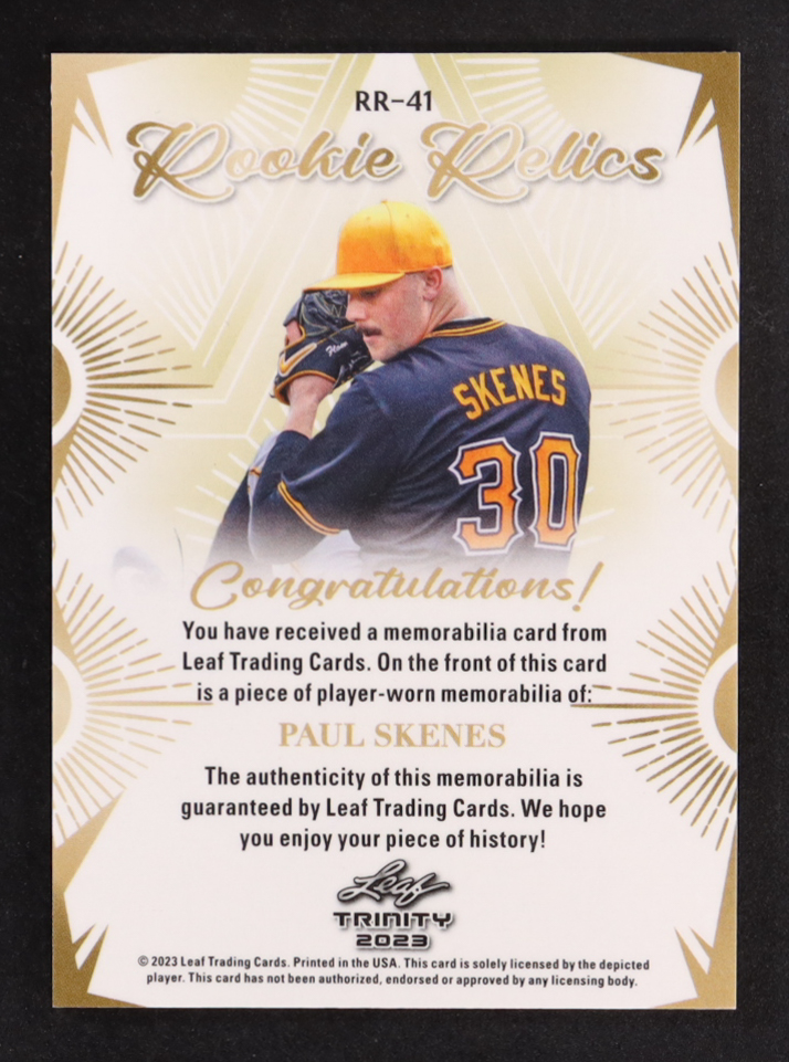 Paul Skenes 2023 Leaf Trinty Rookie Relics JSY #RR41 RC