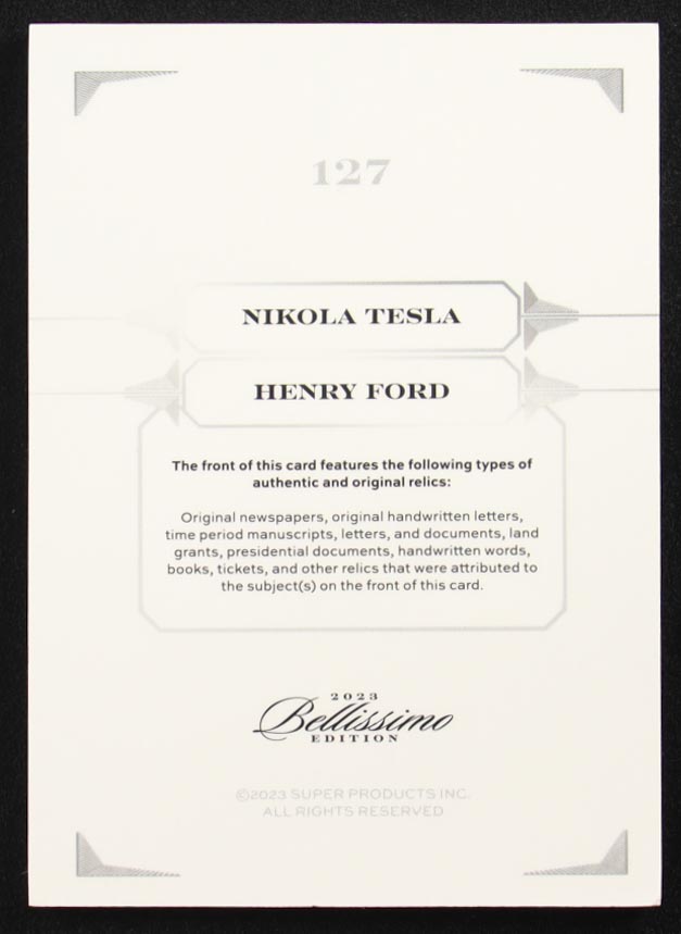 Nikola Tesla / Henry Ford 2023 Bellissimo Edition Double Relic #127 #81/99 Holo