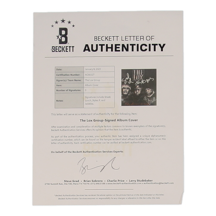 Album includes record and sleeve. Sleeve has been hand-signed by Jadakiss, Styles P and Sheek Louch.