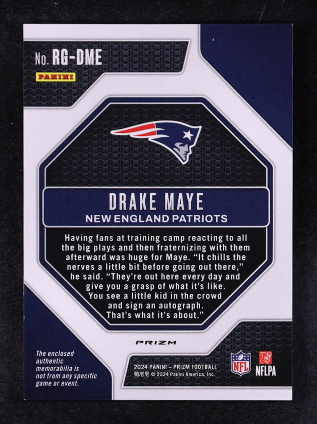 Drake Maye 2024 Panini Rookie Gear Prizm MEM #RG-DME RC