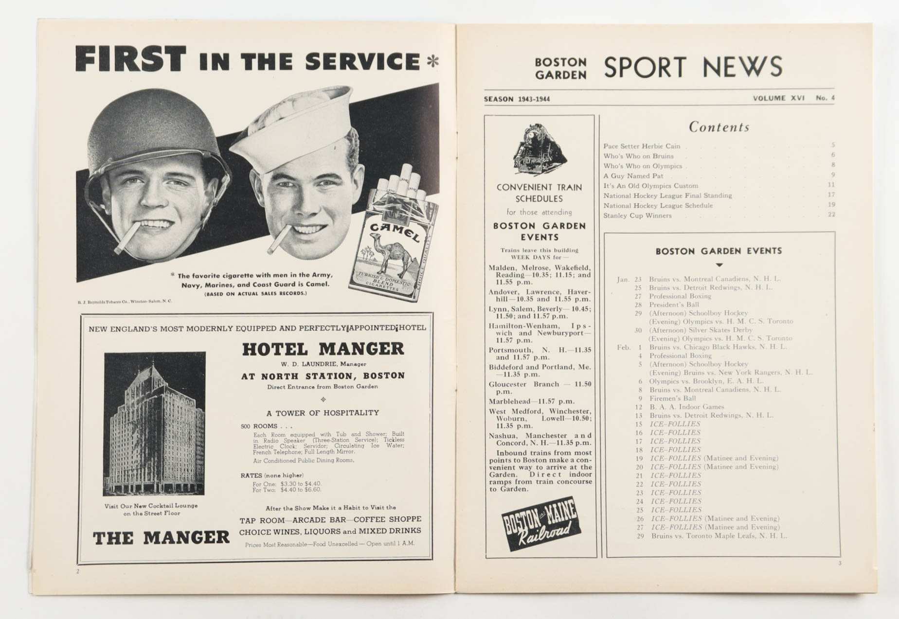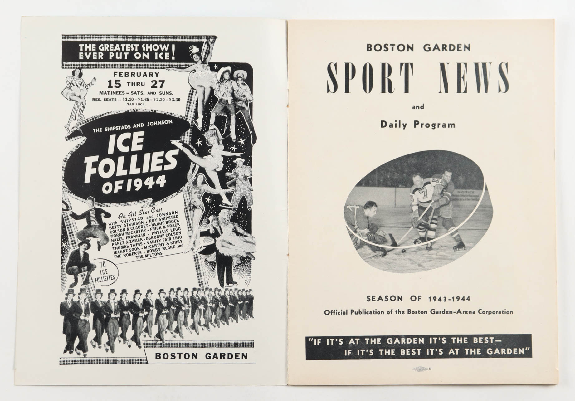1943 Boston Garden Sport News Boston Bruins Hockey Game Program