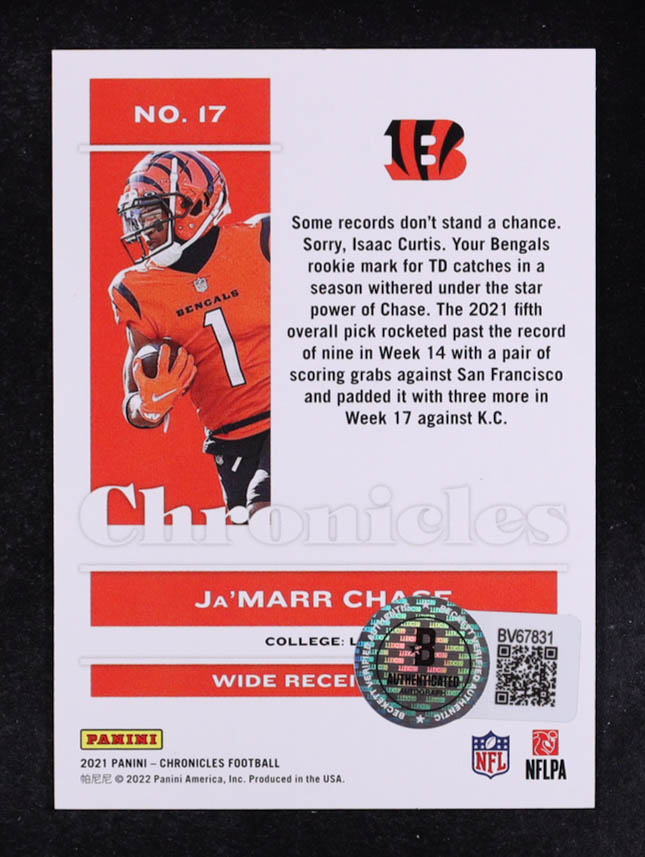 Ja'Marr Chase Signed 2021 Panini Chronicles #17 RC (Beckett)