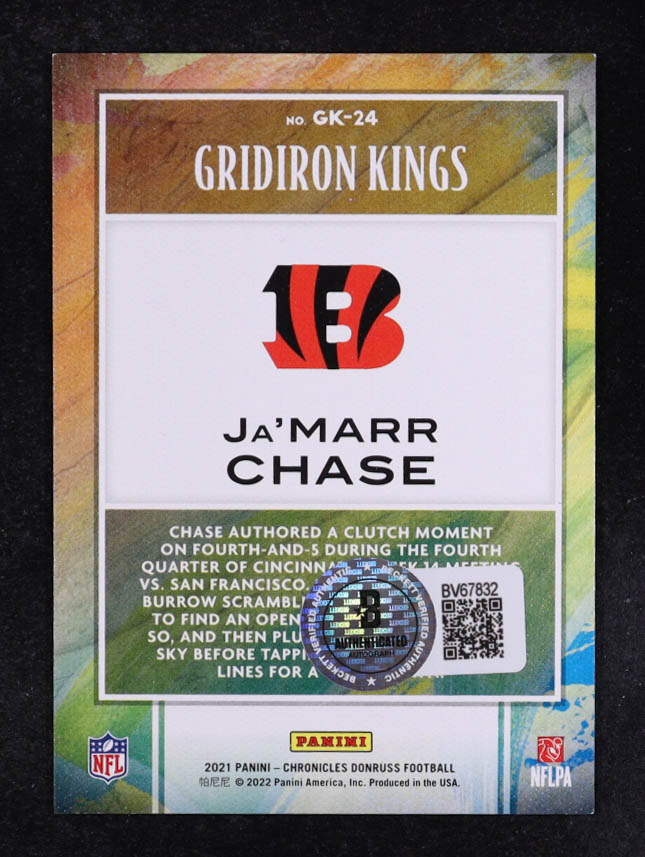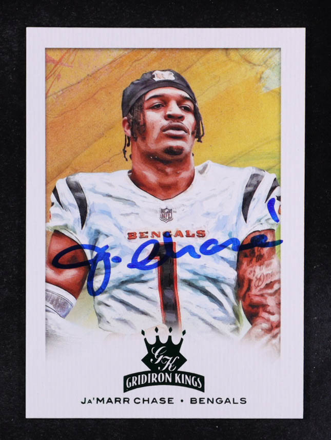 Ja'Marr Chase Signed 2021 Panini Chronicles Gridiron Kings Green #24 RC (Beckett)