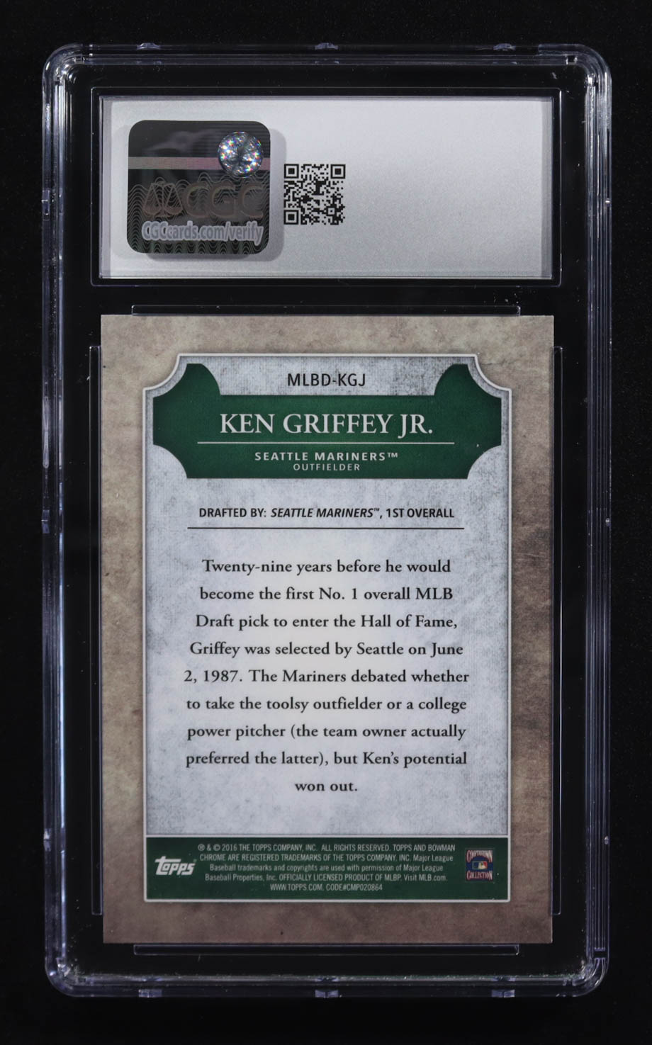 Ken Griffey Jr. 2016 Bowman Chrome Draft MLB Draft History #MLBDKGJ (CGC 10)