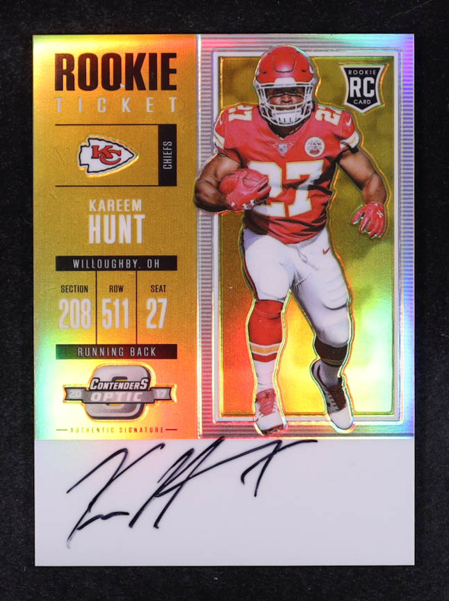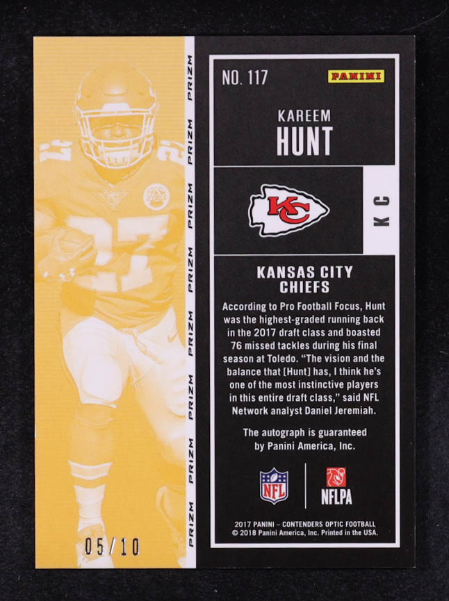 Kareem Hunt 2017 Panini Contenders Optic Gold Rookie Ticket Auto #117 RC #05/10