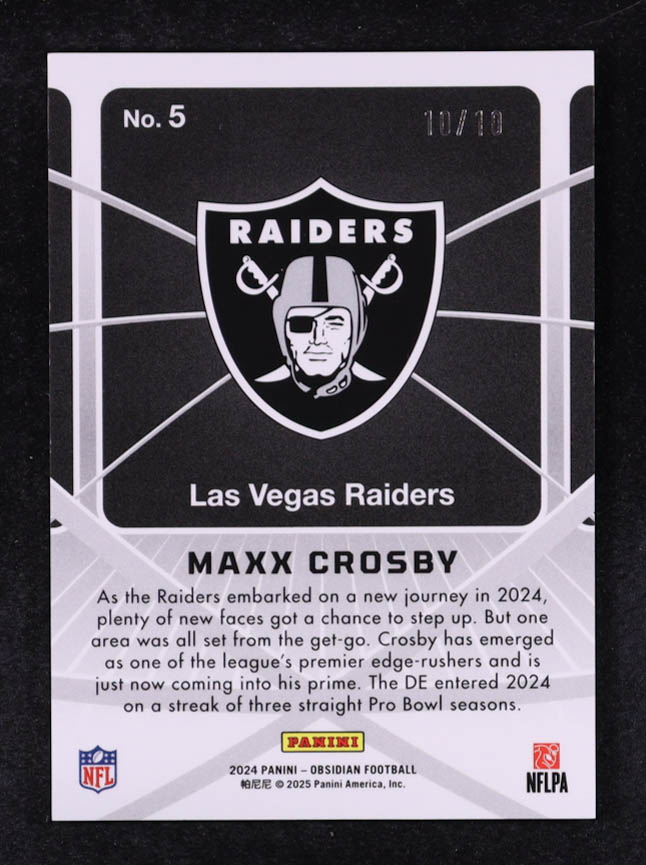 Maxx Crosby 2024 Panini Obsidian Atomic Intials Gold #5 #10/10