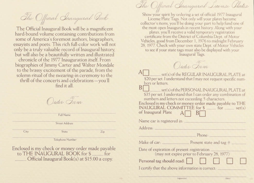 1977 Official Presidential Inauguration Set with Sealed Documents
