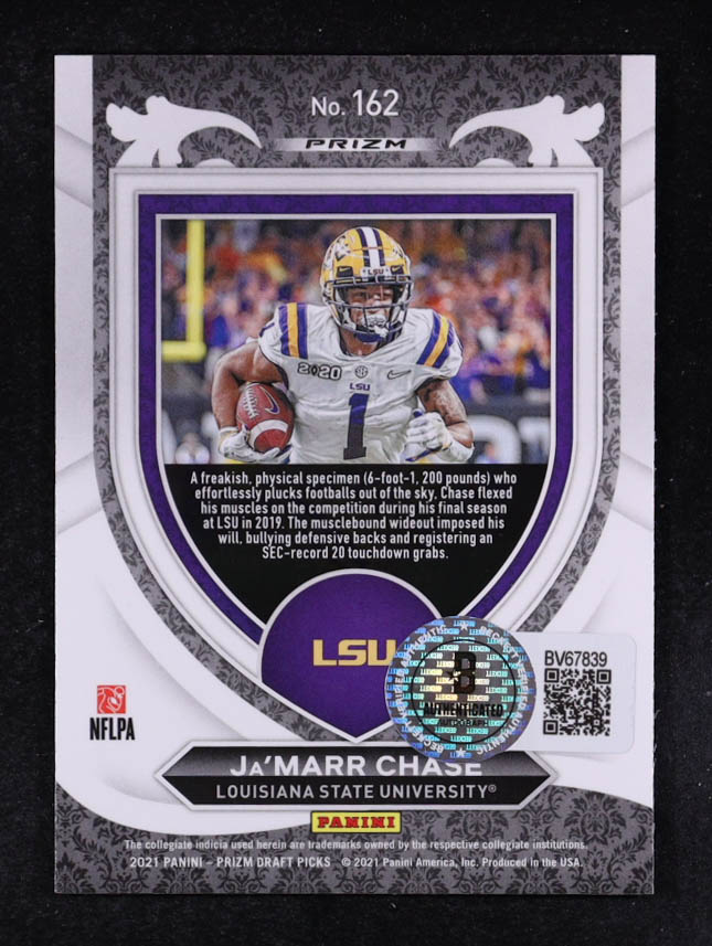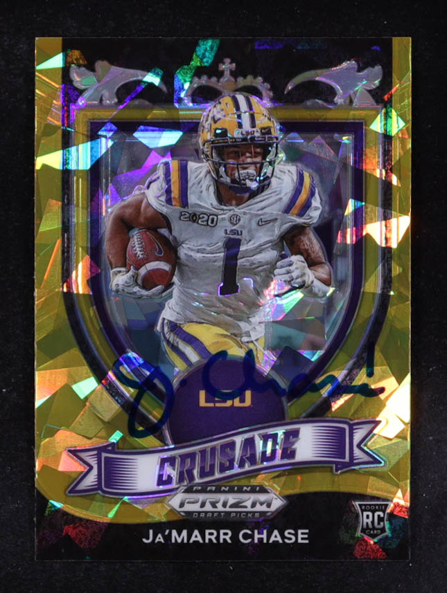 Ja'Marr Chase Signed 2021 Panini Prizm Draft Picks Prizms Gold Ice #162 RC (Beckett)