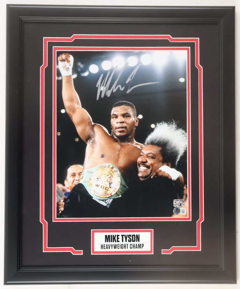 Custom frame measures approximately 18.5" x 22.5" in size and features a photo that has been hand-signed by Mike Tyson (HOF).
