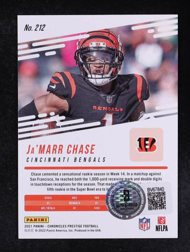 Ja'Marr Chase Signed 2021 Panini Chronicles Prestige Rookies Update #212 RC (Beckett)