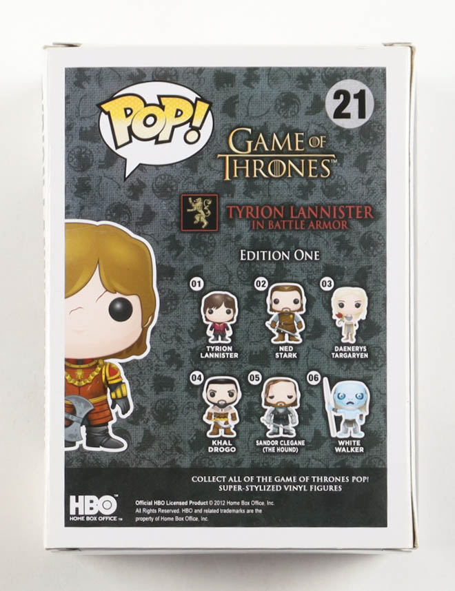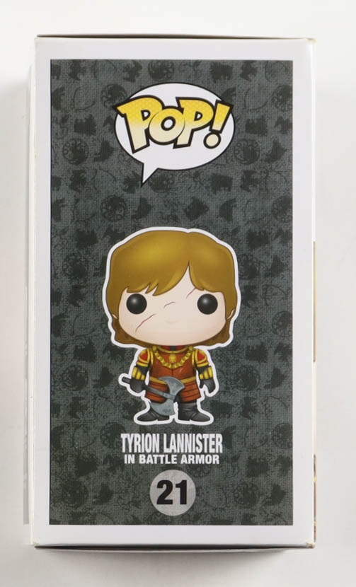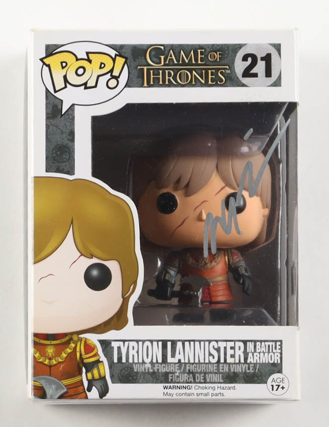 Funko Pop! vinyl figure measures approximately 4" in height and has been hand-signed on the packaging by Peter Dinklage (Tyrion Lannister).