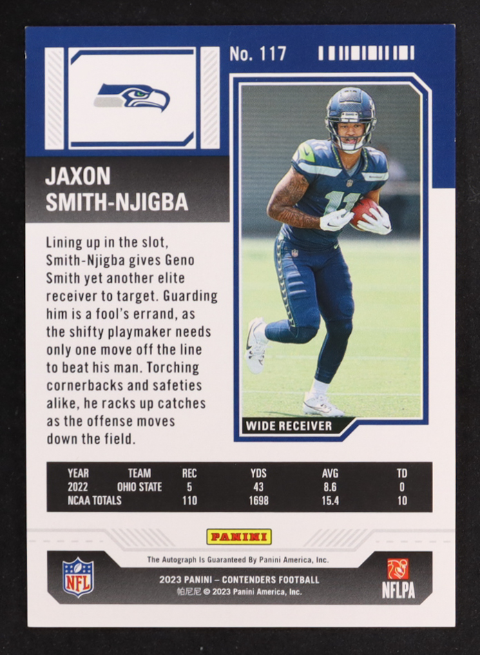 Jaxon Smith-Njigba 2023 Panini Contenders Playoff Ticket #117 #107/149 AU RC