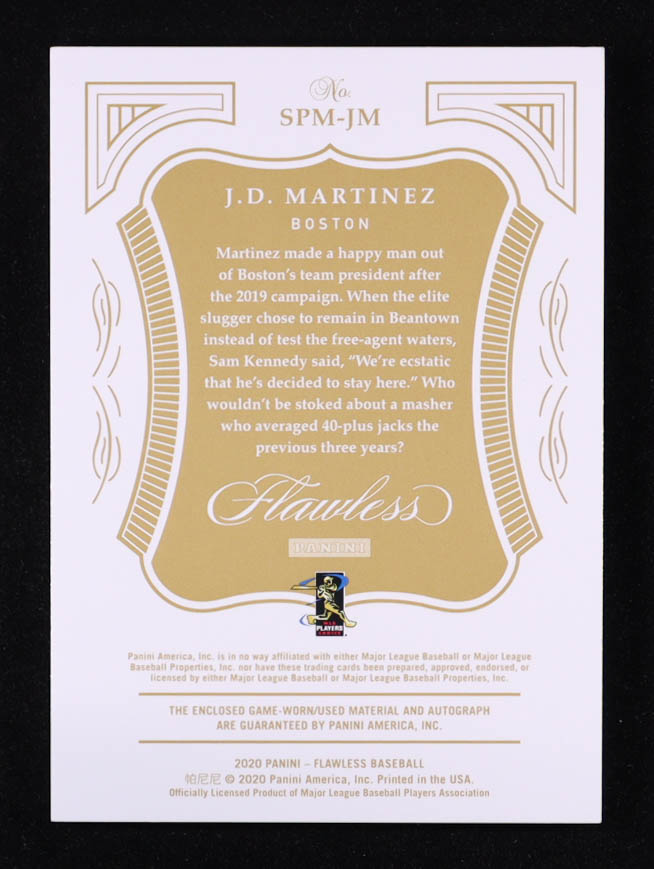J.D. Martinez 2020 Panini Flawless Signature Prime Materials Ruby #34 #20/20