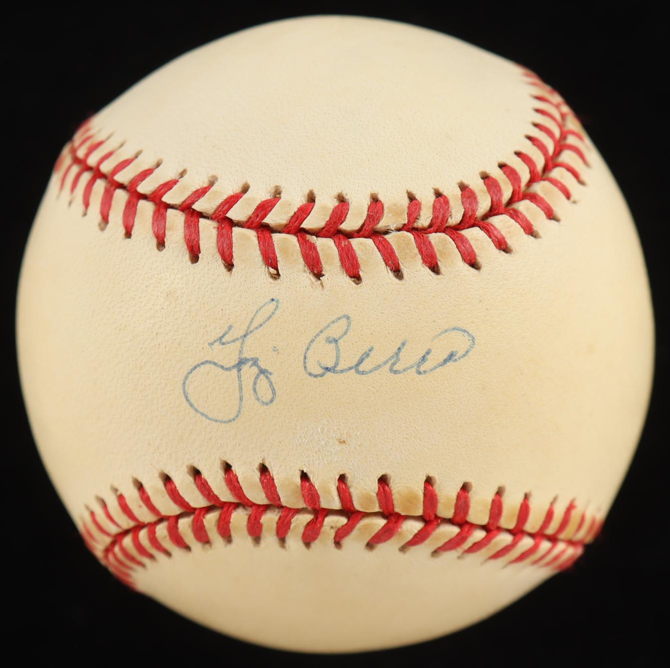 Rawlings Official American League baseball has been hand-signed by Yogi Berra (New York Yankees, HOF). Please note, baseball is stained and naturally toned.