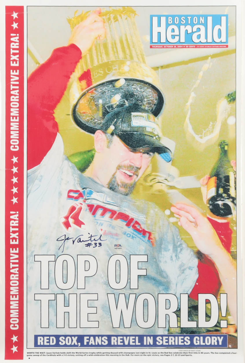 Jason Varitek Signed Boston Herald 16x24 Art Print (PSA)