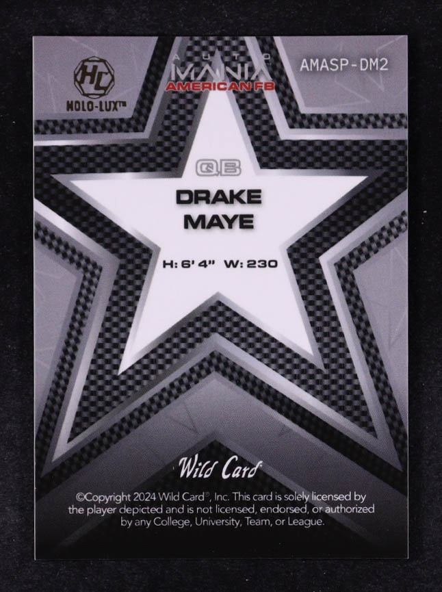 Drake Maye 2024 Wild Card Automania American FB Star Holo-Lux #AMASP-DM2 RC #3/3