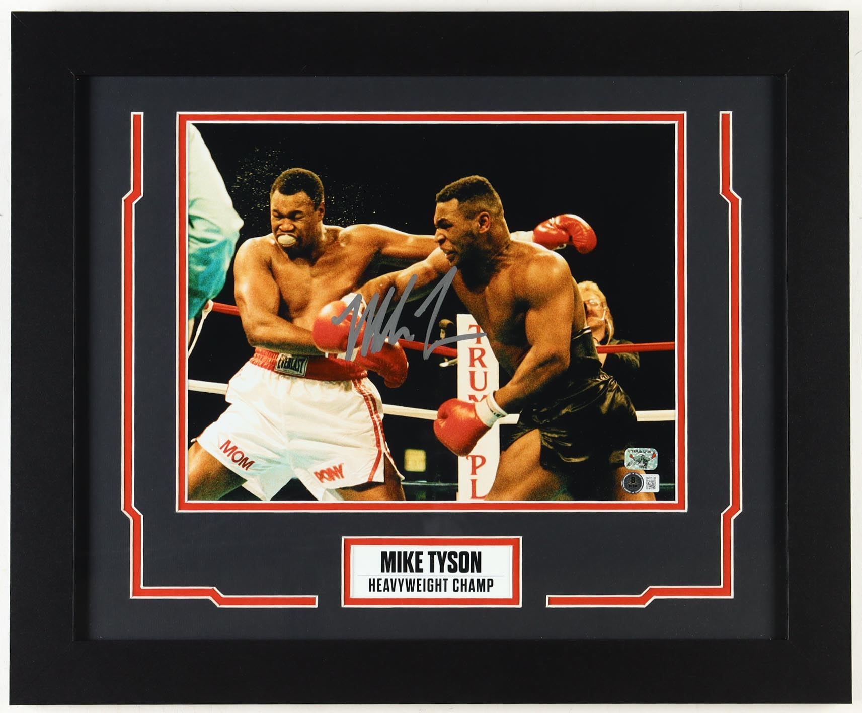 Custom framed display measures 18.5" x 22.5" in size and features a photo that has been hand-signed by Mike Tyson (HOF).